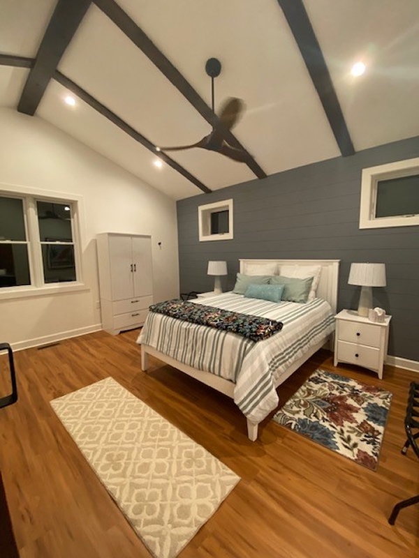 This unique building was designed for multiple needs. Storage was the primary need. Garage area was for multiple pieces of farm equipment and ATV’s to enjoy and care for the property.First story lean area was designed for personal storage that the current cabin was lacking. Second story was designed with 2 bedrooms and 2 full bathrooms, also including a great room area for visiting guests and family.